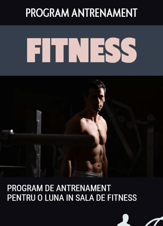 Este un program de antrenament pentru o luna de zile, in sala de fitness. Contine si video explicativ cum sa folosesti exercitiile, si progresia antrenamentului.